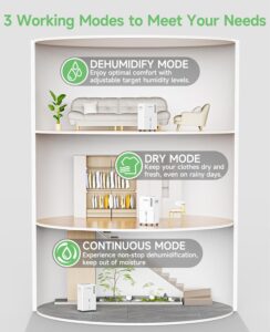 - 3 Modes Including Quiet Sleep:Adapts to your needs, from powerful dehumidifying to ensuring a peaceful night.