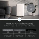 - Engineered to tackle serious dampness across vast areas, this powerhouse removes 40 pints of moisture daily in spaces up to 6,000 sq. ft.