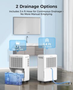 - Hassle-Free Continuous Drainage:The included drain hose allows for non-stop moisture removal, eliminating the need to ever manually empty a water bucket.