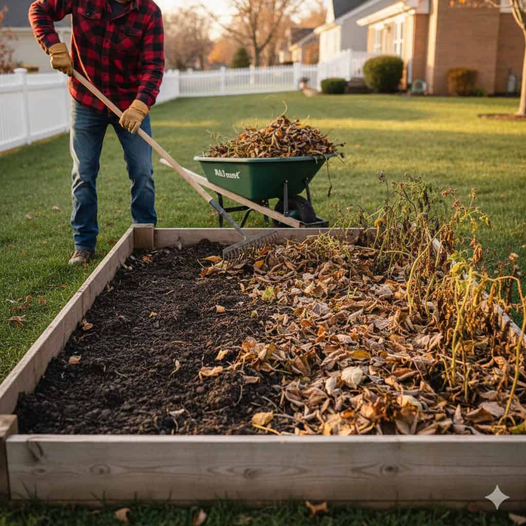 Clear Debris: Rake up any dead leaves and sick plants that have fallen into your garden beds. A clean bed keeps fungi, mold, and insect eggs from finding a warm place to spend the winter.