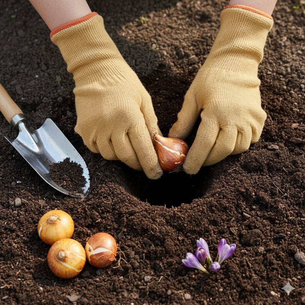 How to Plant: A good rule of thumb is to plant bulbs three times as deep as they are tall. Make sure to plant them with the pointy end facing up!